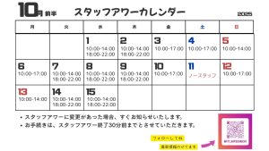 10月1日から15日までのスタッフアワーのご案内。