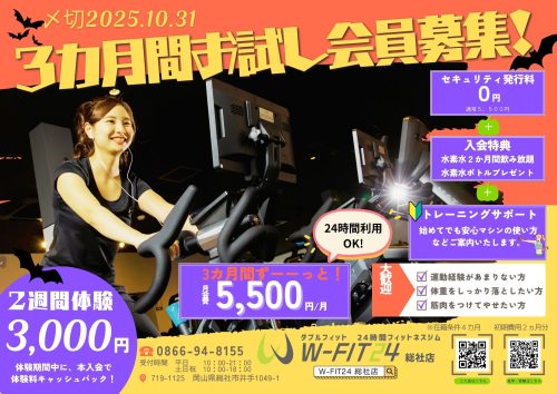 3カ月間の月会費がなんと5,500円で24時間利用可能!