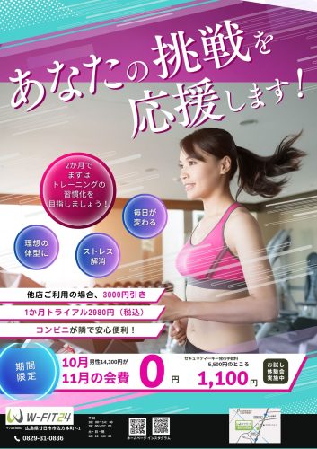 W-FIT24廿日市店では、10月限定のお得な入会キャンペーンを実施中です!