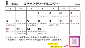 2026年1月1日から1月15日までのスタッフアワーのご案内
