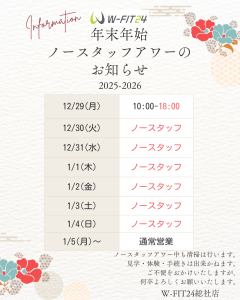 年末年始のスタッフアワーにつきまして下記の通りとさせていただきます。