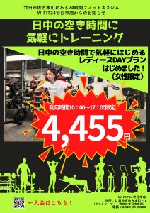 W-FIT24廿日市店のお得なプラン、レディースデイプラン