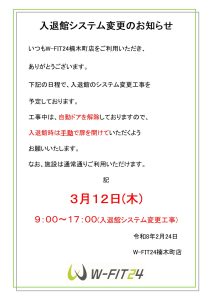 上記の日程で」、入退館のシステム変更工事を予定しております。